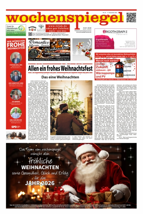 Sie sehen also, dass die, denen ich auf diesem Spaziergang begegnete, ein paar Bäume waren bzw. ein paar fehlende Bäume. Ein paar Tannen, die nicht mehr das waren, was sie bis gestern noch gewesen waren. Das ist die Art von Verwandlung, die ich uns allen für dieses Weihnachtsfest wünsche. Es ist nicht unser erstes Weihnachten, wie das dieser Bäume, die sicher noch niemals zuvor eine Christbaumkugel erblickten und denen auch noch nie ein fröhliches „Jingle Bells“ um die Äste fuhr. Hoffentlich ist es ebenso wenig unser letztes Weihnachtsfest, aber vielleicht kann es ja dennoch ein besonderes werden. Es könnte zum Beispiel das Weihnachten sein, an dem Sie Ihre Schwester so herzlich lachen sehen, dass sie gar nicht mehr aufhören kann. Es könnte auch das Weihnachten sein, an dem Sie zum ersten Mal alle gemeinsam das Weihnachtsessen zubereiten. Oder das, an dem Sie erkennen, wie wichtig es ist, Handy und Uhr auch mal beiseite zu legen, die Zeiger stehen zu lassen oder sich zumindest nicht um das Ticken zu scheren.
