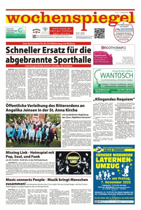 MISBURG. Eine besondere Veranstaltung findet am Samstag, den 25. Oktober 2025, in Misburg statt: Die öffentliche Verleihung des Ritterordens „Mudzborgher Löwe“ an die Misburger Bürgerin Angelika Jeinsen. Die Laudatio wird Adis Ahmetovic, Mitglied des Deutschen Bundestages, halten.